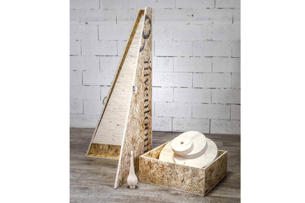 From the traditional pine tree to the wooden silhouette, Arbor creates a new, unconventional and sustainable way of decorating the home for Christmas.Four discs that rest on the ground and support the structure, a tree and over 130 rectangular elements, all handmade in fir wood.