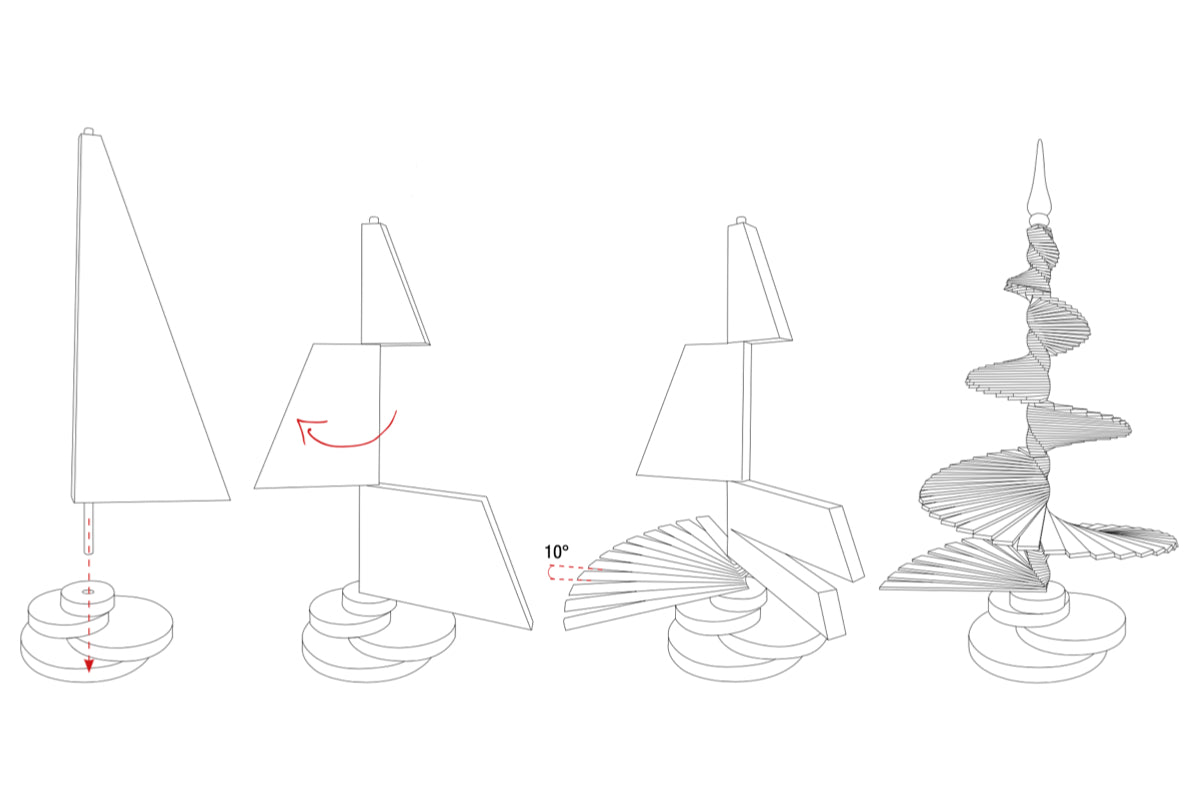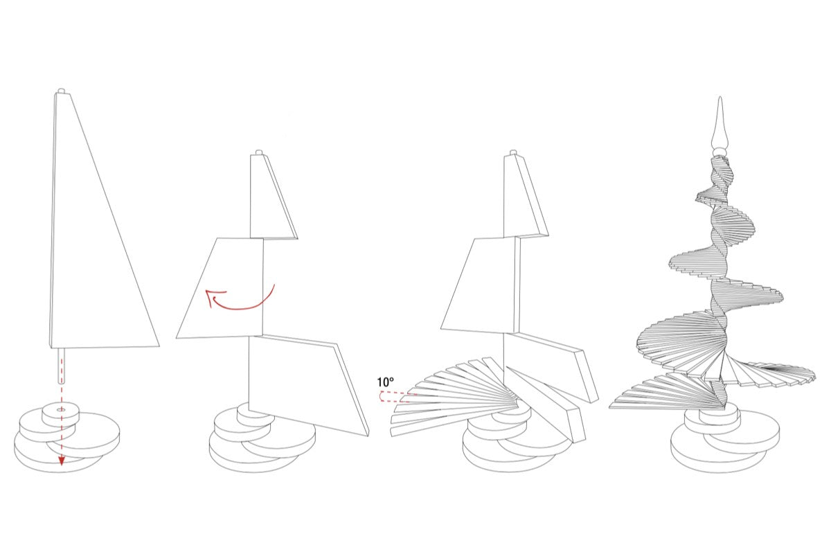 Arbor comes with its wooden packaging where it is stored when no longer exposed. Assembling the Arbor tree is very simple, after few steps you have an object that will keep you company during the holidays.