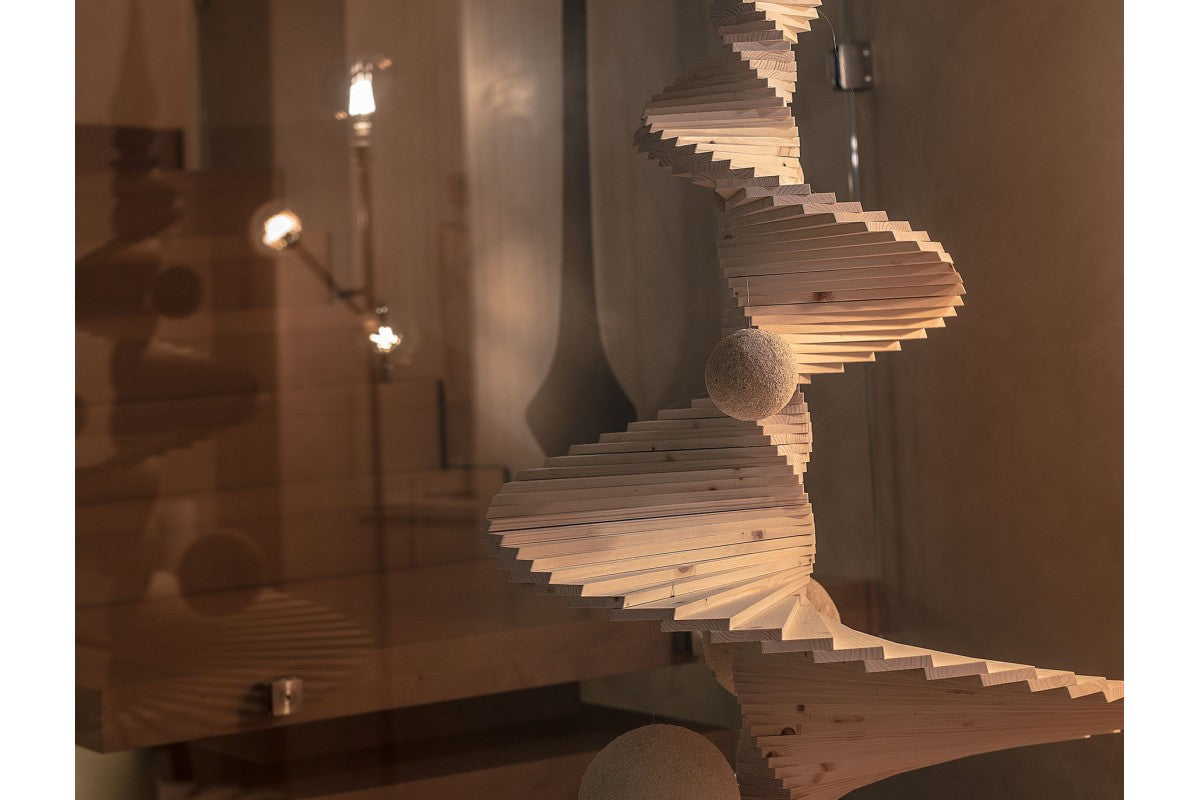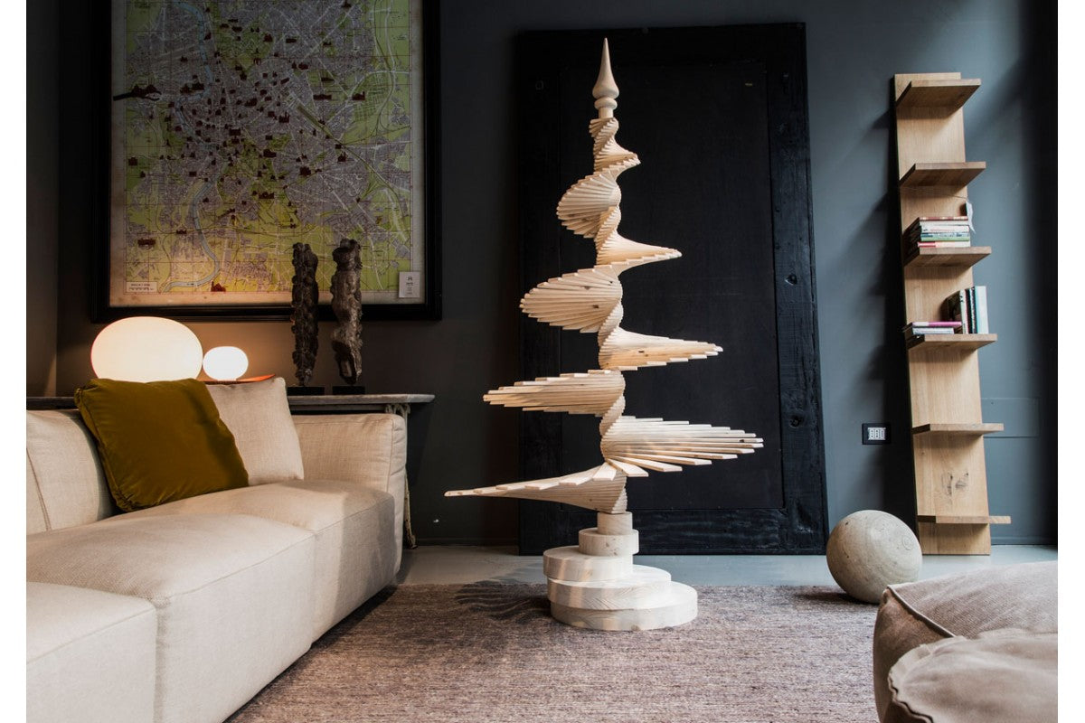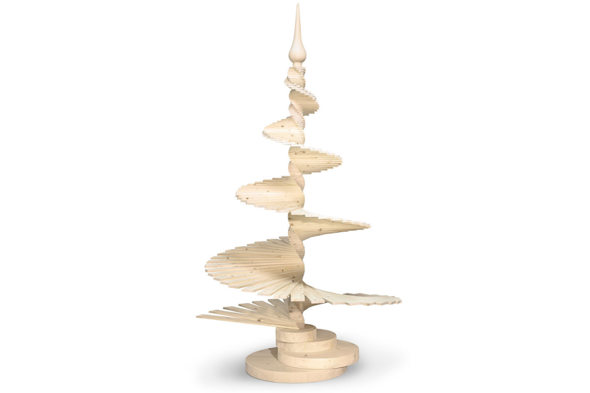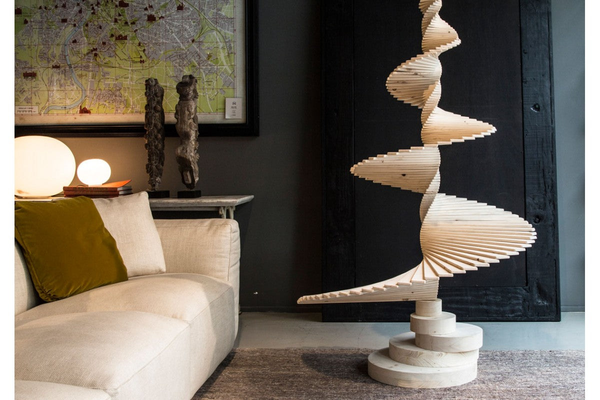 A fir wood tree that welcomes Christmas in a new, elegant and sculptural way.