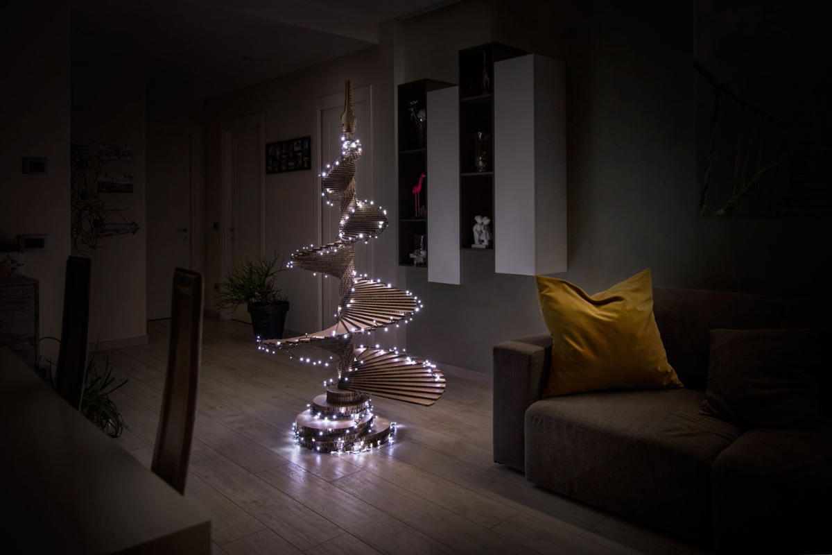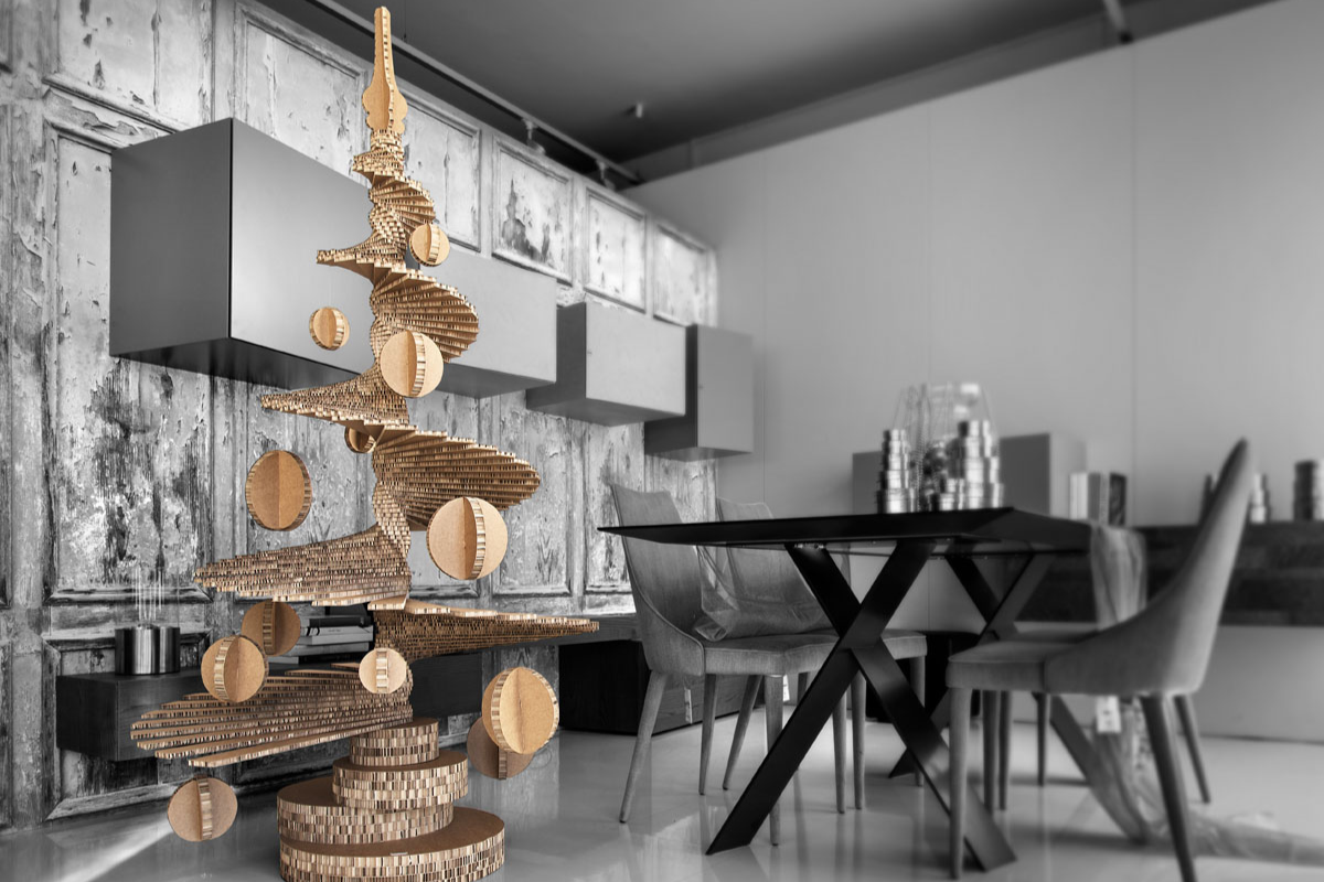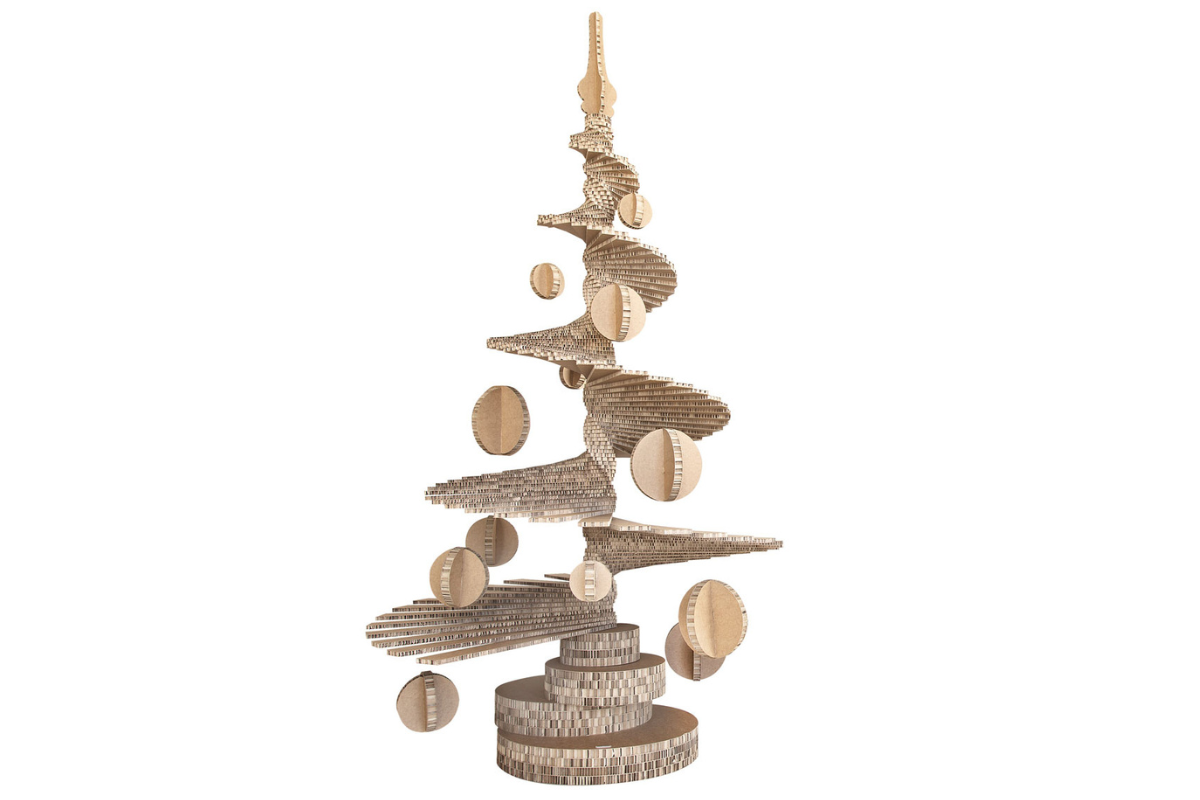 A cardboard tree that welcomes Christmas in a new, elegant and sustainable way.