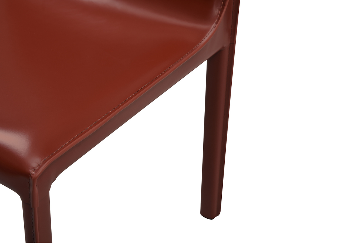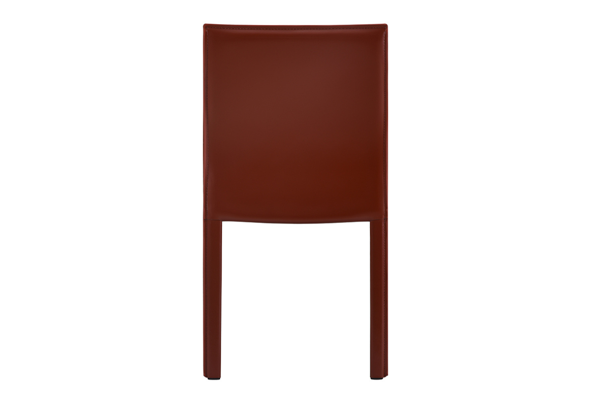 Set of 2 armless dining chairs in a rich burgundy colour.